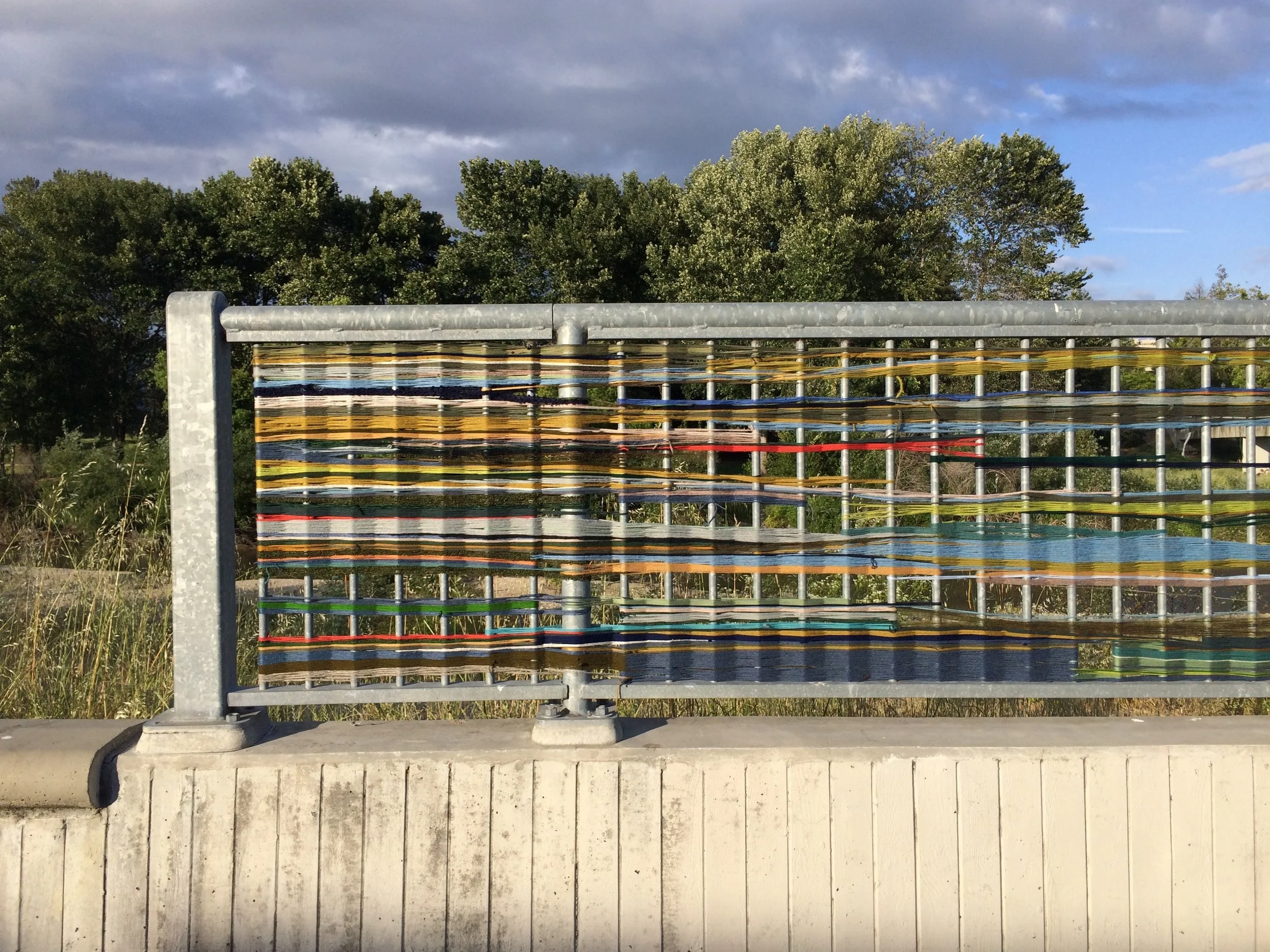 WEAVE WITH US is a collaborative project between artists Melody Overstreet and Nora Grant. We wanted to turn the entrance to the pedestrian bridge on the San Lorenzo riverwalk into a vibrant tapestry.